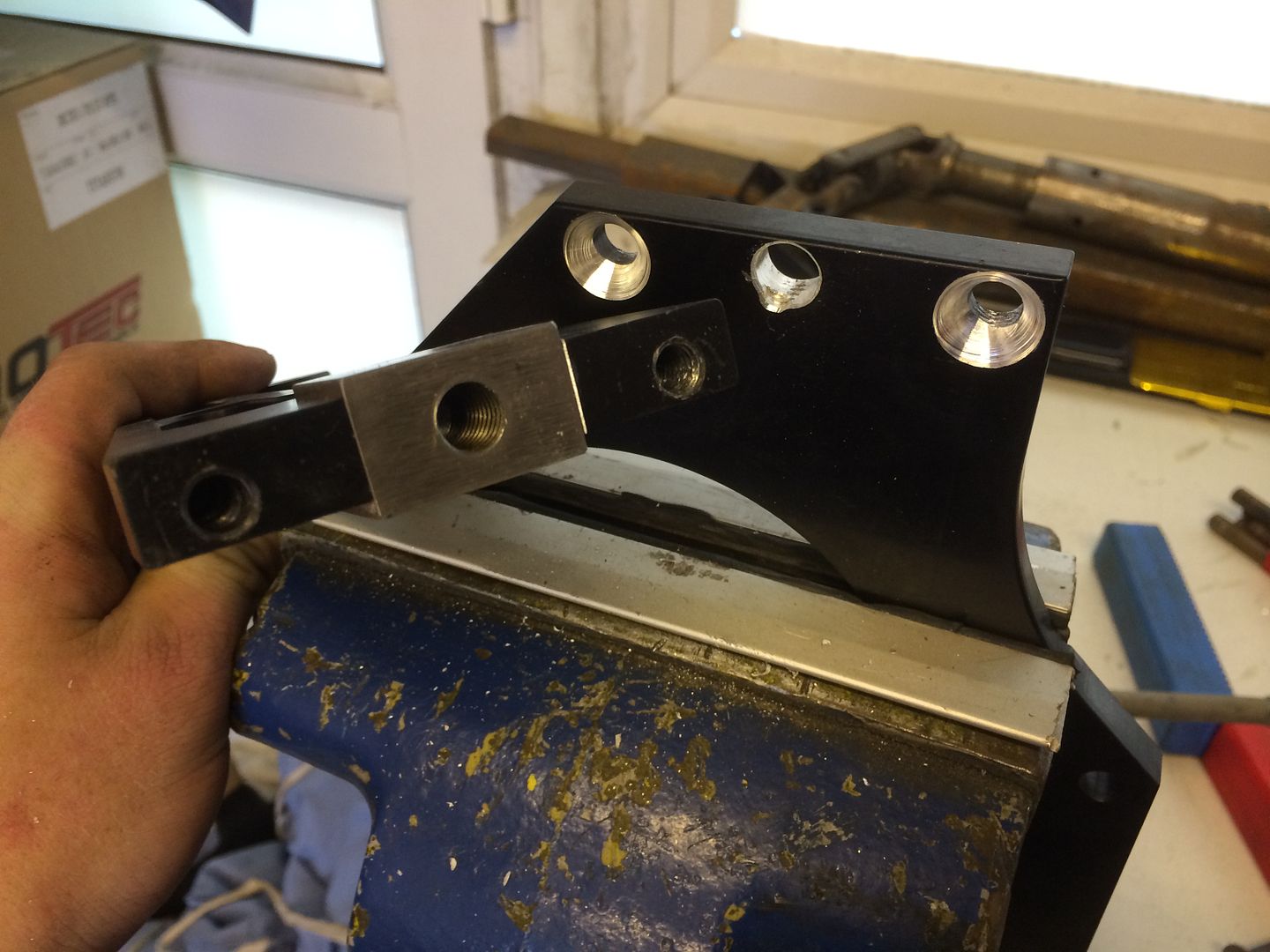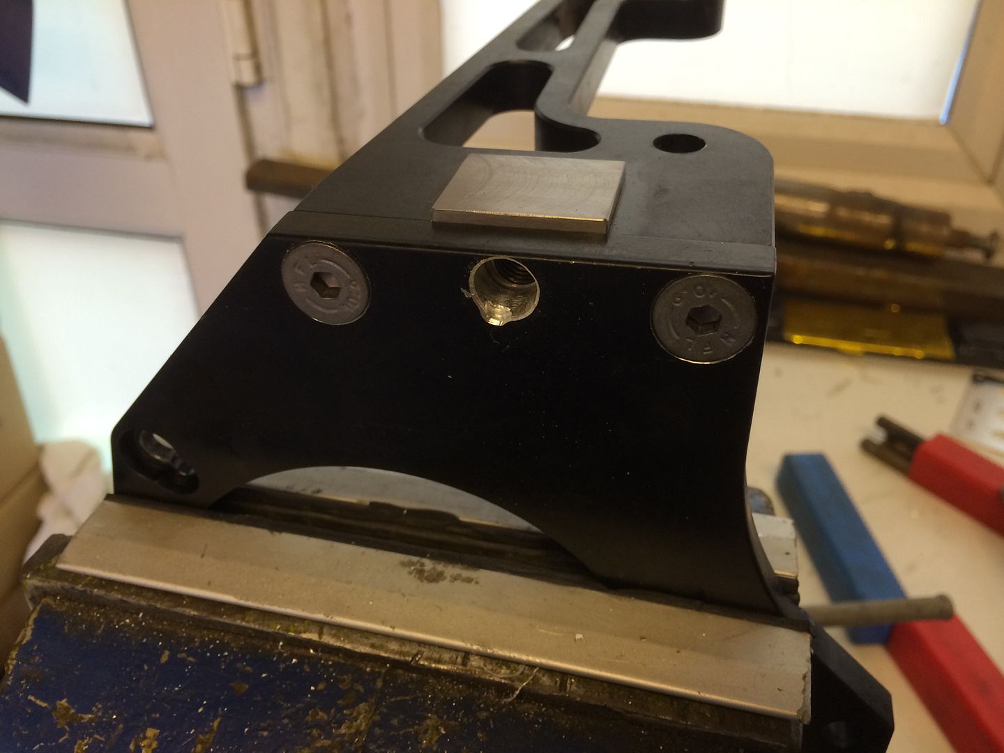 I took the rear part of the bracket and milled a slot into it. Then made another piece with a stronger material but put a keyway into it so the steel boss doesn't fall out when I remove the pulley. Then countersunk the bracket so accommodate the idler pulley.