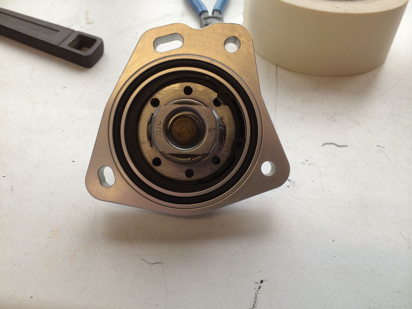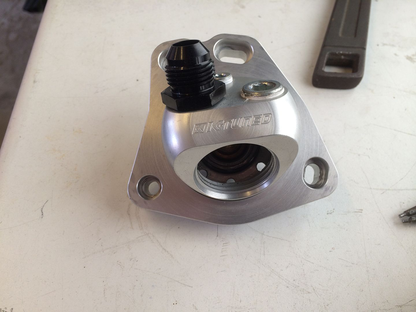 After reading in the k-tuned thread I decided to get rid of the plastic thermostat housing as this is clearly not a road car so hopefully won't affect things.